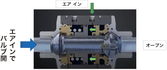 ■同軸バルブの動作方法(スプリングリターン式常時閉バルブの場合)