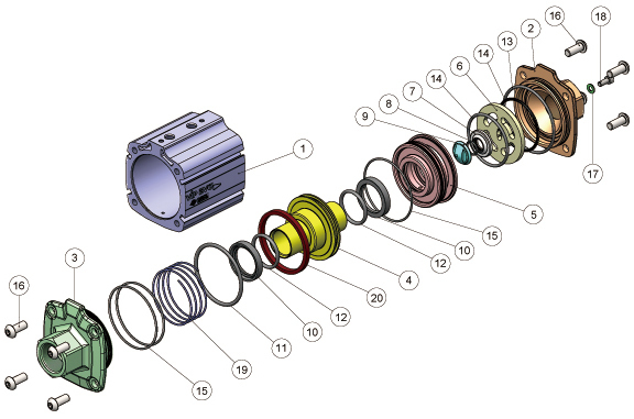| ⑫ | ピストン平衡Oリング | 2 | NBR/EPDM/FKM |